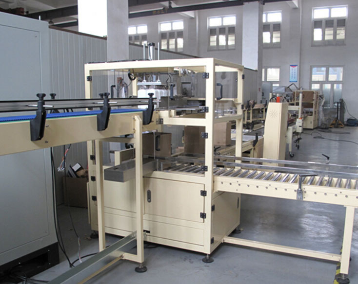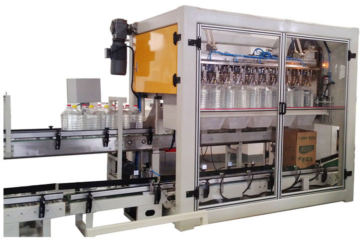 2.5升食用油開裝封箱包裝流水線是由開箱機、動力輥筒輸送機、自動折蓋封箱機與2臺自動打包機組合而成。采用德新技術(shù),具有當今際先水平,突破傳統(tǒng)機械結(jié)構(gòu),采用機、電、氣、光、磁為一體的高新技術(shù),適用于將瓶子自動裝進紙(塑料)箱內(nèi),并且產(chǎn)品規(guī)格和品種更新只需改變機械手,采用優(yōu)質(zhì)進口件,結(jié)構(gòu)緊湊、生產(chǎn)效率極高、機械運行穩(wěn)定、精確、操作簡單、維護方便、故障率低、自動化程度高、能自動調(diào)節(jié)速度,適用于啤酒、飲料、食品、醫(yī)藥、化工自動裝箱工序。