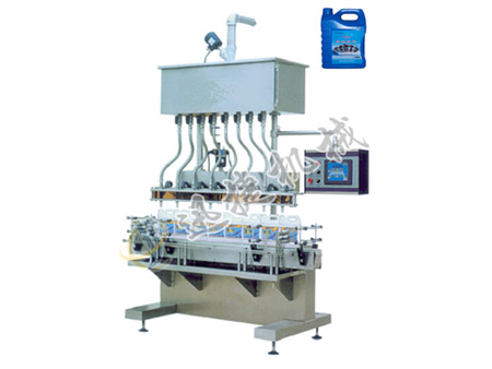 本機采用PLC可編程控制,配以觸摸屏人機界面系統(tǒng),采用常壓式固定流道參數(shù),控制灌料時間來實現(xiàn)不同計量的灌裝。本機采用重力式灌裝。適用于雨刮水、防凍水、潤滑油等液體物料的灌裝。