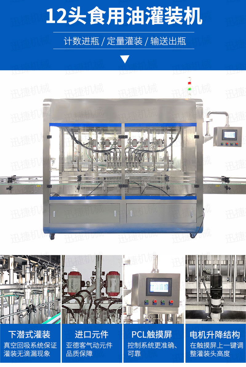 該系列玻璃瓶灌裝機采用容積式計量灌裝原理,適用于各種規(guī)(100ml-1000ml)的南瓜籽油、榛子油、牡丹籽油、芝麻油、核桃油、山茶油、亞麻籽油、棉籽油、橄欖油、大豆油、玉米油、菜籽油等食用油灌裝。設(shè)備采用伺服驅(qū)動活塞計量,保證了 1‰的灌裝精度,在保證灌裝精度的同時,提高了 20%-35%灌裝速度,操作簡單,維護方便,節(jié)省人工成本,生產(chǎn)效率更高。