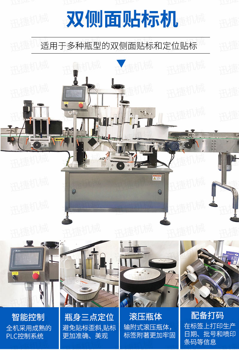 全機采用的技術(shù),微電腦-PLC-電子光纖傳感器控制系統(tǒng),使整機運行穩(wěn)定、高速; 操作系統(tǒng)采用操作界面控制,操作簡便、實用、效率高,并有產(chǎn)量記數(shù)功能; 技術(shù)的速度快且穩(wěn)定; 適用范圍大,可用于各種尺寸的圓形瓶貼標; 輸附式滾壓瓶體,使標簽附著更加牢固; 前后段可選連線使用。