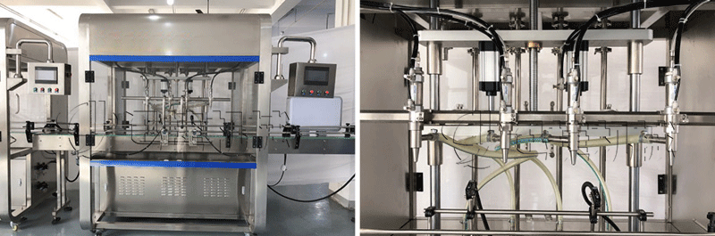 四頭充氮機和四頭充油機。 瓶子可以自動充滿氮氣以達(dá)到保鮮效果。 自動流量計式灌裝機保證了灌裝速度和精度。 獨立芯設(shè)計的防滴灌裝頭使油脂包裝車間免受二次污染,更加清潔。